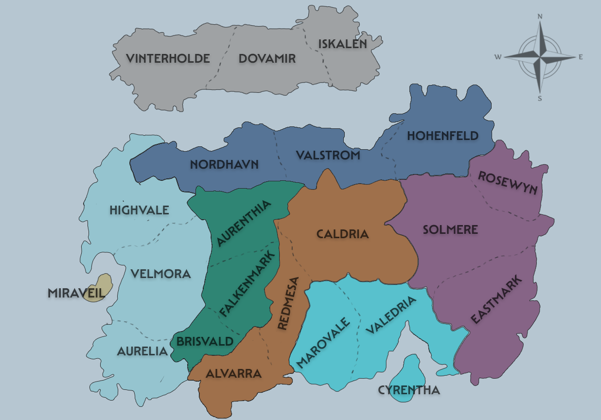 Capital: Eldrhavn • Volcanic north • Native hardiness lines